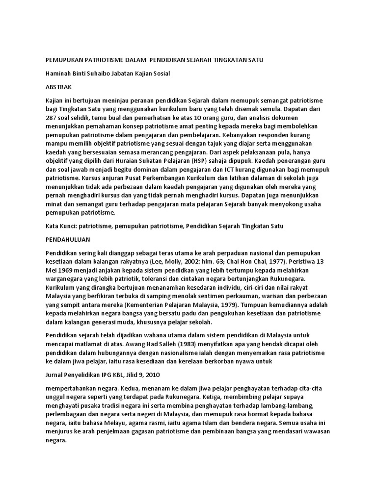 Pdf Berbangga Sebagai Rakyat Malaysia Satu Kajian Tentang Pengetahuan Nilai Patriotisme Pelajar Berdasarkan Pembelajaran Isi Kandungan Sejarah Anuar Ahmad Academia Edu