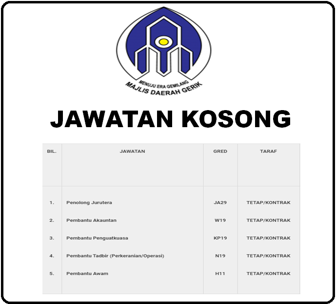 Minima Pmr Pt3 Layak Memohon Pelbagai Jawatan Kosong Terkini Di Majlis Daerah Gerik Perak Mohon Sebelum 16 September 2020 Infomalaysiakini