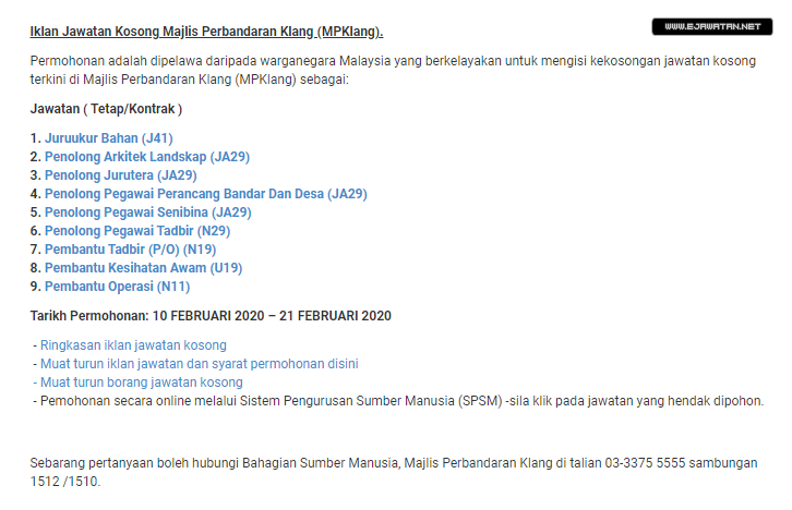 Jawatan Kosong Di Majlis Perbandaran Klang Mpklang 21 Februari 2020 Jawatan Kosong Kerajaan Swasta Terkini Malaysia 2020 2021
