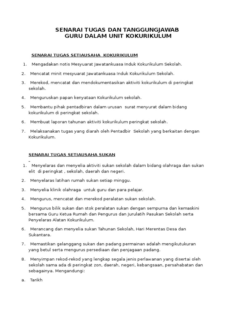 Senarai Tugas Dan Tanggungjawab Guru Dalam Unit Kokurikulum