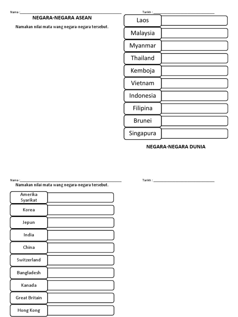 Nama Mata Wang Asean Dunia