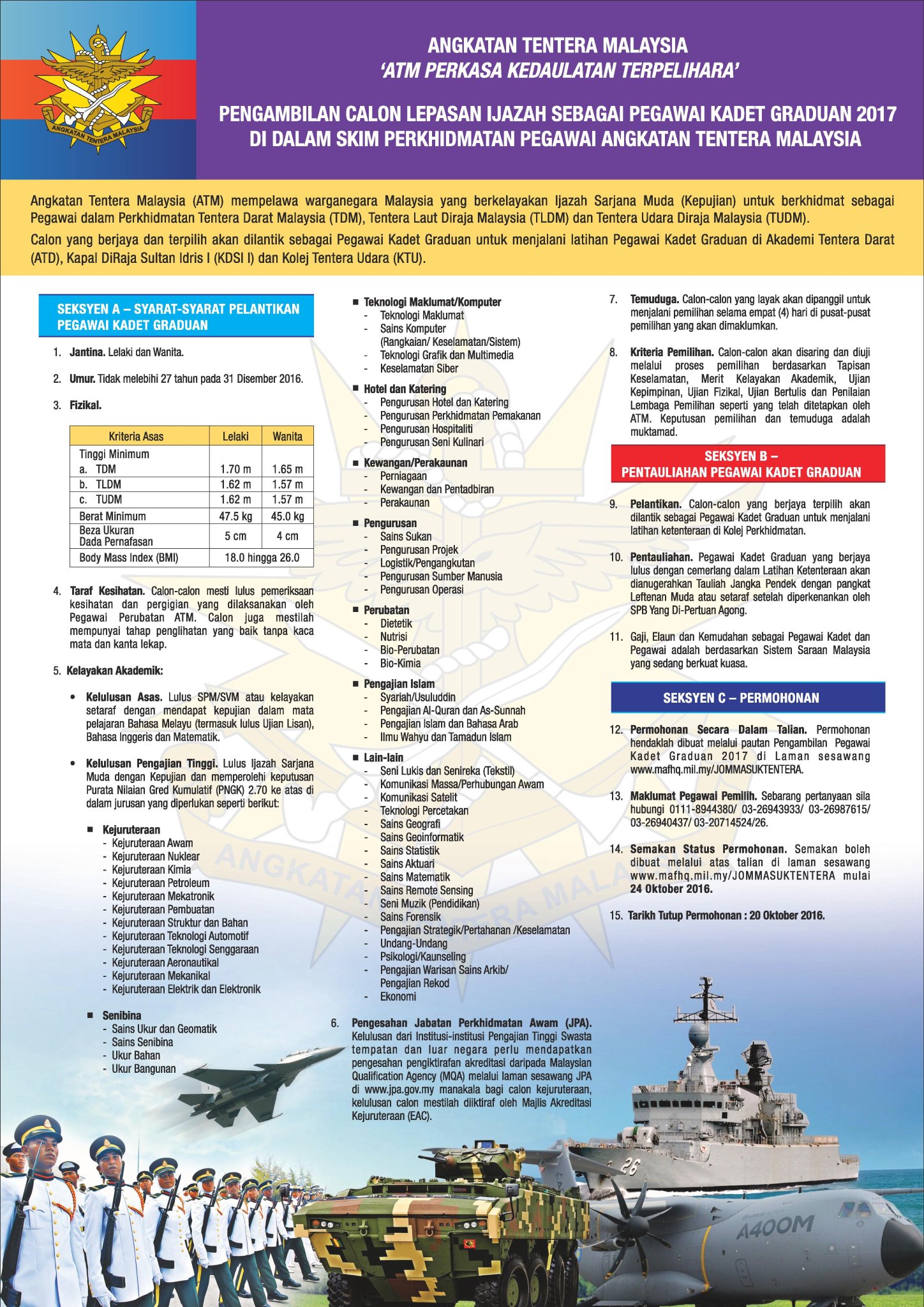 Pengambilan Calon Lepasan Ijazah Sebagai Pegawai Kadet 2018 Di Dalam Skim Perkhidmatan Pegawai Angkatan Tetap Angkatan Tentera Malaysia 17 Oktober 2017 Appjawatan Malaysia
