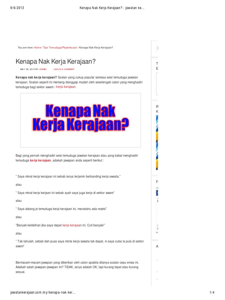 Kenapa Nak Kerja Kerajaan Jawatan Kerajaan