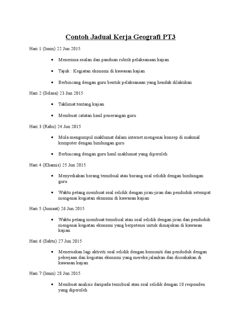 Contoh Jadual Kerja Kajian Lapangan Geografi