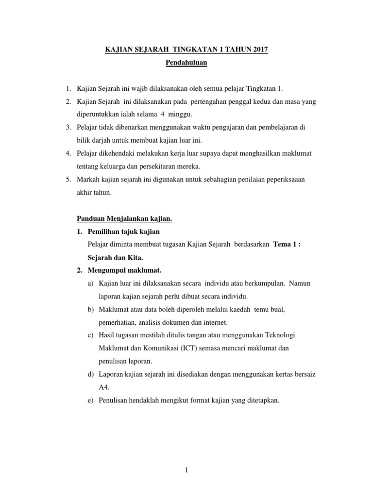 Kajian Sejarah Tingkatan 1 Tahun 2017 Pendahuluan