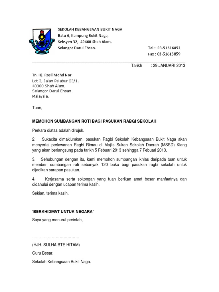 Permohonan Bantuan Kewangan Surat Mohon Sumbangan Yb