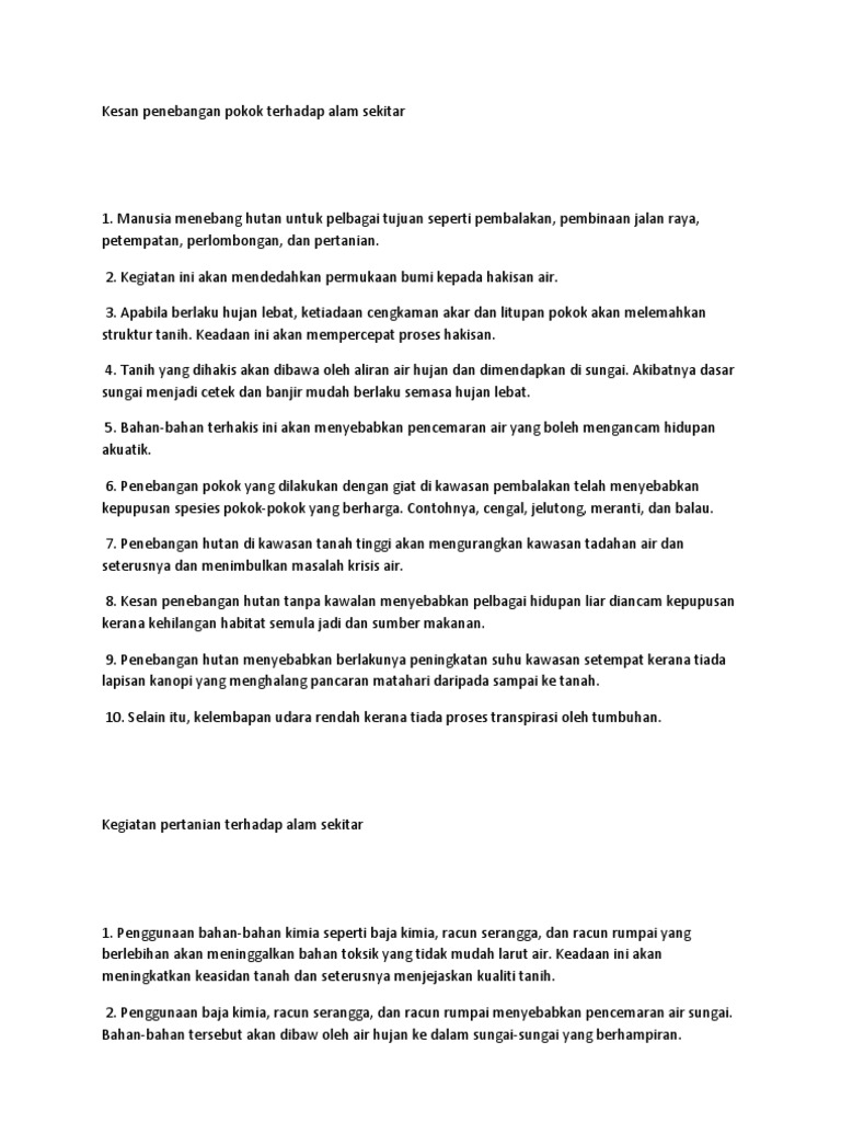 Kesan Kegiatan Manusia Terhadap Alam Sekitar Doc