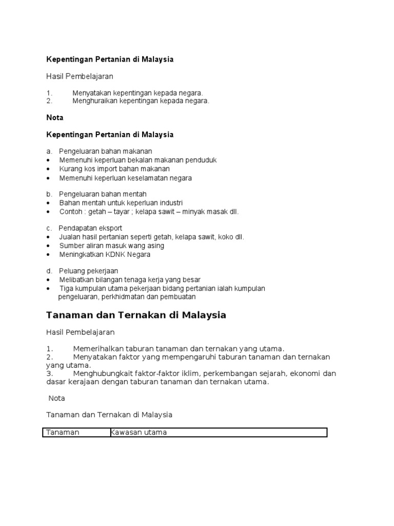 Hasil Pembelajaran Kepentingan Pertanian Di Malaysia