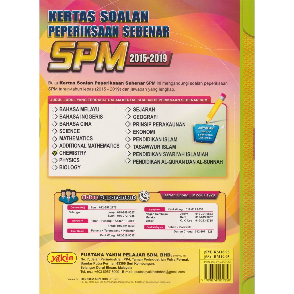 Yakin Kertas Soalan Peperiksaan Sebenar 2015 2019 Kimia Chemistry Dwibahasa Spm Shopee Malaysia
