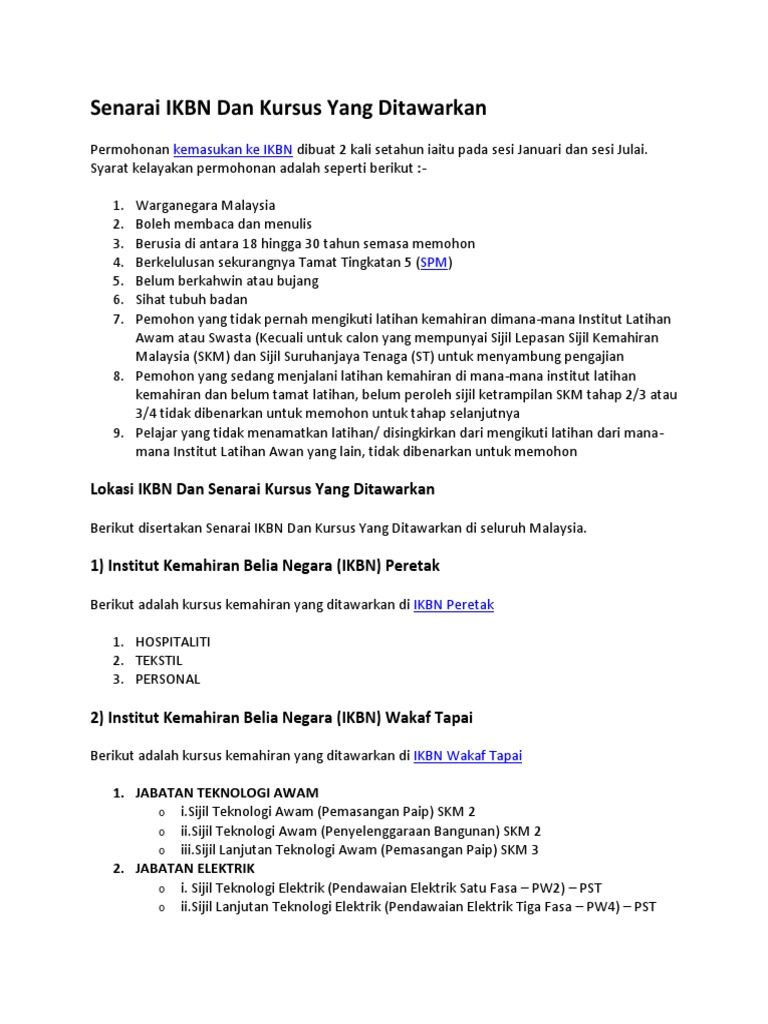 Senarai Ikbn Dan Iktbn Serta Kursus Yang Ditawarkan