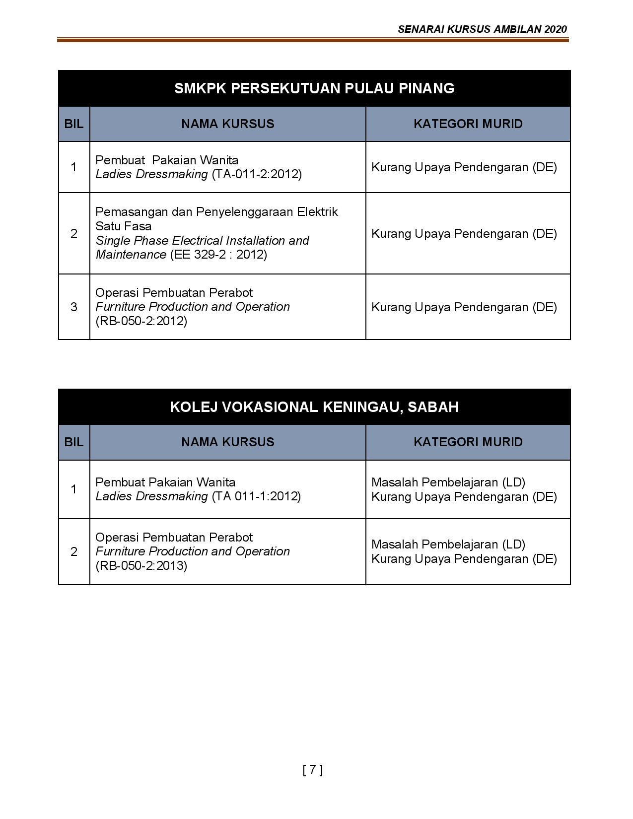 Senarai Kv Dan Kursus Yang Ditawarkan Di Kolej Vokasional