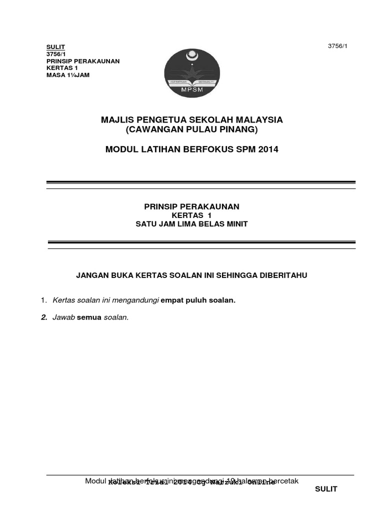 Trial Penang 2014 Spm Prinsip Perakaunan K1