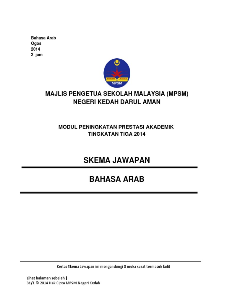 Skema Bahasa Arab Percubaan Pt3 Kedah 2014