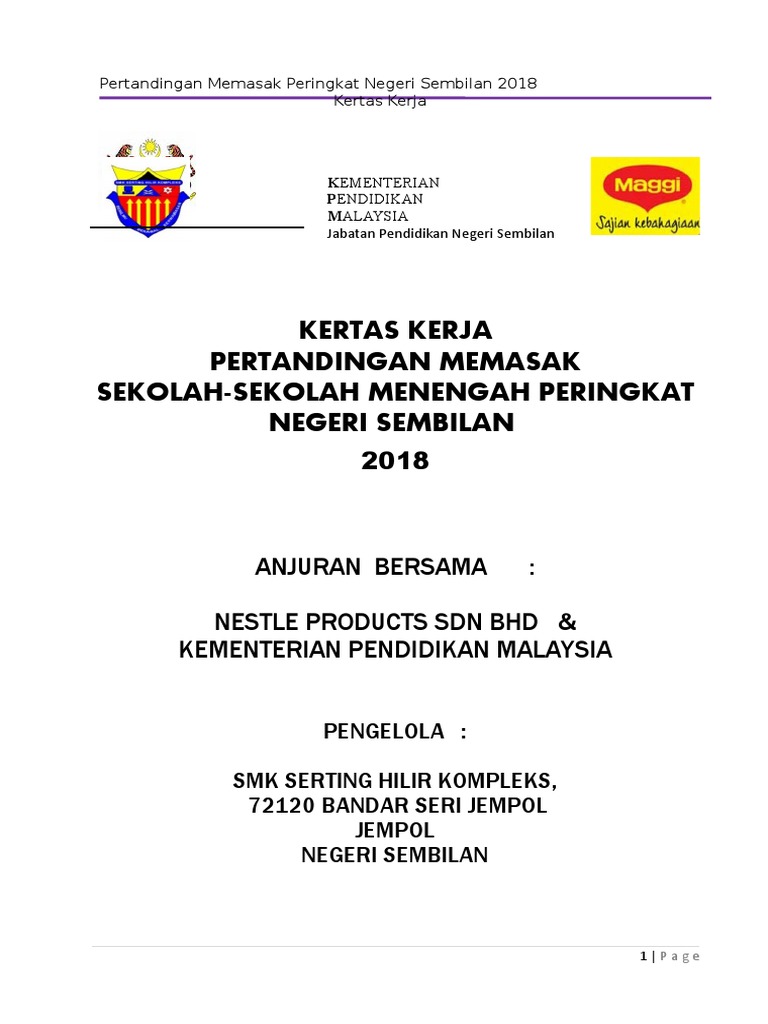 Kertas Kerja Pertandingan Memasak Ns 2018 Smkshk 2 3