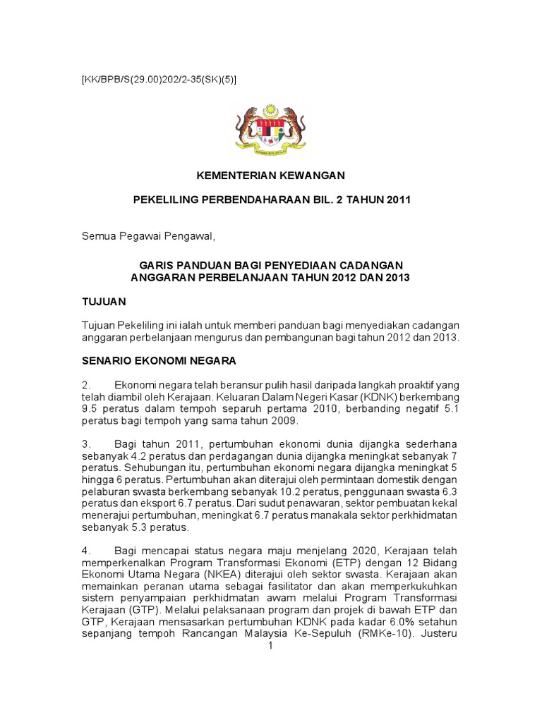 Pekeliling Perbendaharaan Bil 2 Tahun 2011