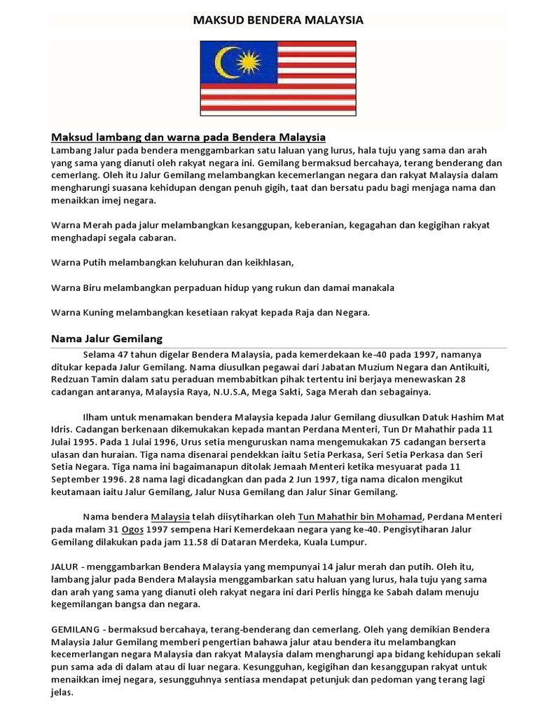 Maksud Lambang Dan Warna Pada Bendera Malaysia Docx Document