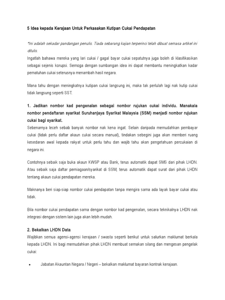 Jom kita ambil tahu 10 perkara berkenaan cukai pendapatan di malaysia seperti berikut. 1 mengikut akta percukaian 1967 setiap individu yang menerima sebarang pendapatan di dalam malaysia perlu mengisytiharkan pendapatan tersebut kepada lembaga hasil dalam negeri lhdn berdasarkan seksyen 77a 1 akta cukai pendapatan 1967 untuk makluman sekiranya terdapat cukai yang dikenakan bagi tahun tahun taksiran sebelum maka penalti akan. Salinan notis pendaftaran penukaran kepada plt di bawah seksyen 32. Tapi tak pernah declare cukai.