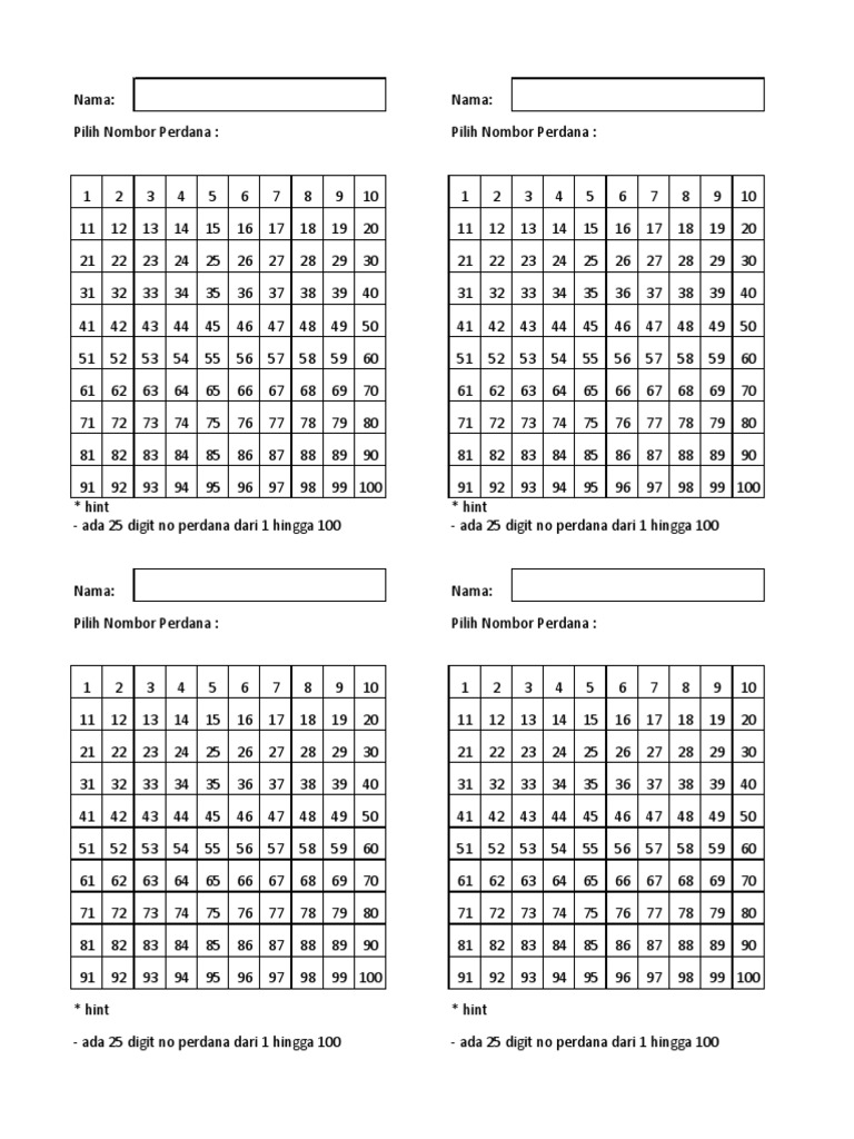 Nombor Perdana 1 Hingga 100