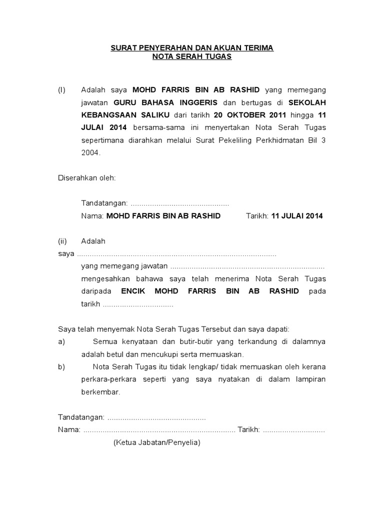 Contoh Nota Serah Tugas Doc