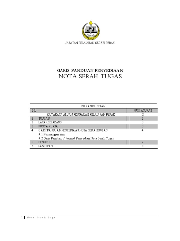 Contoh Nota Serah Tugas Kakitangan Awam Guru