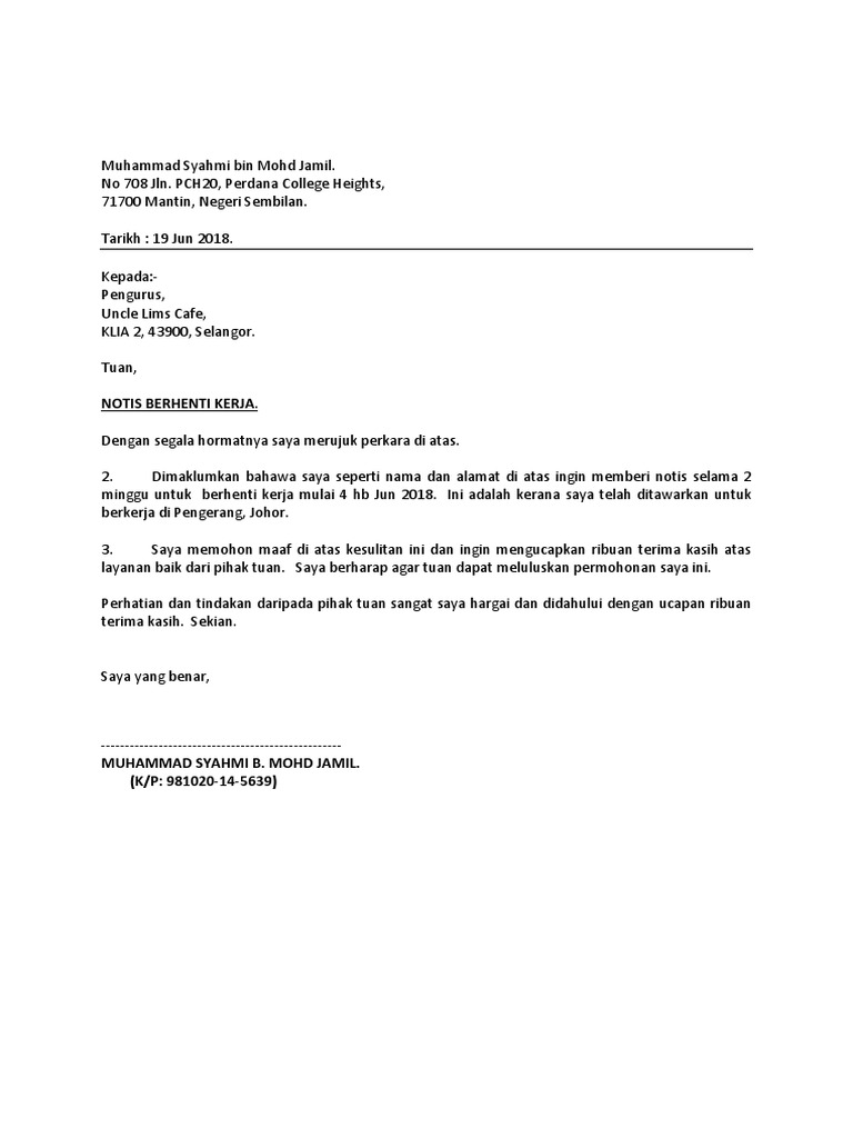 Contoh Surat Berhenti Kerja 24 Jam Pdf 62 By Crisexoblel Issuu