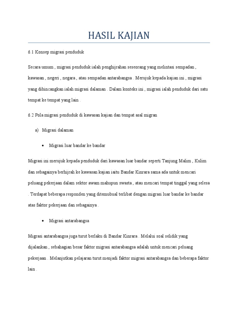 Migrasi Penduduk Di Kawasan Kajian Folio Tingkatan 5 Geografi Hasil Kajian