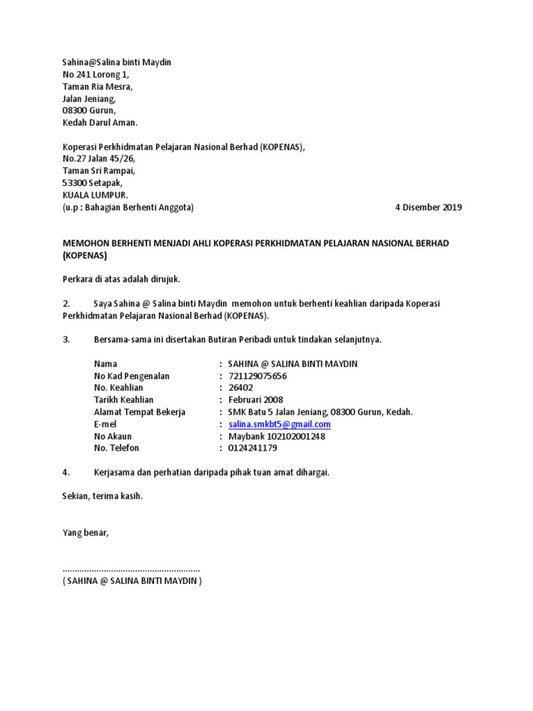 Surat Rasmi Permohonan Berhenti Menjadi Ahli Koperasi Viral Blog 0