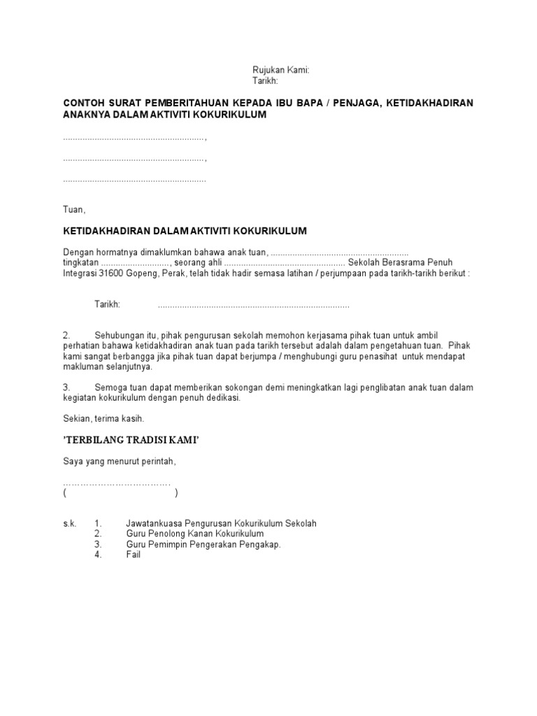 Contoh Surat Makluman Ibu Bapa Kpd Guru Kelas