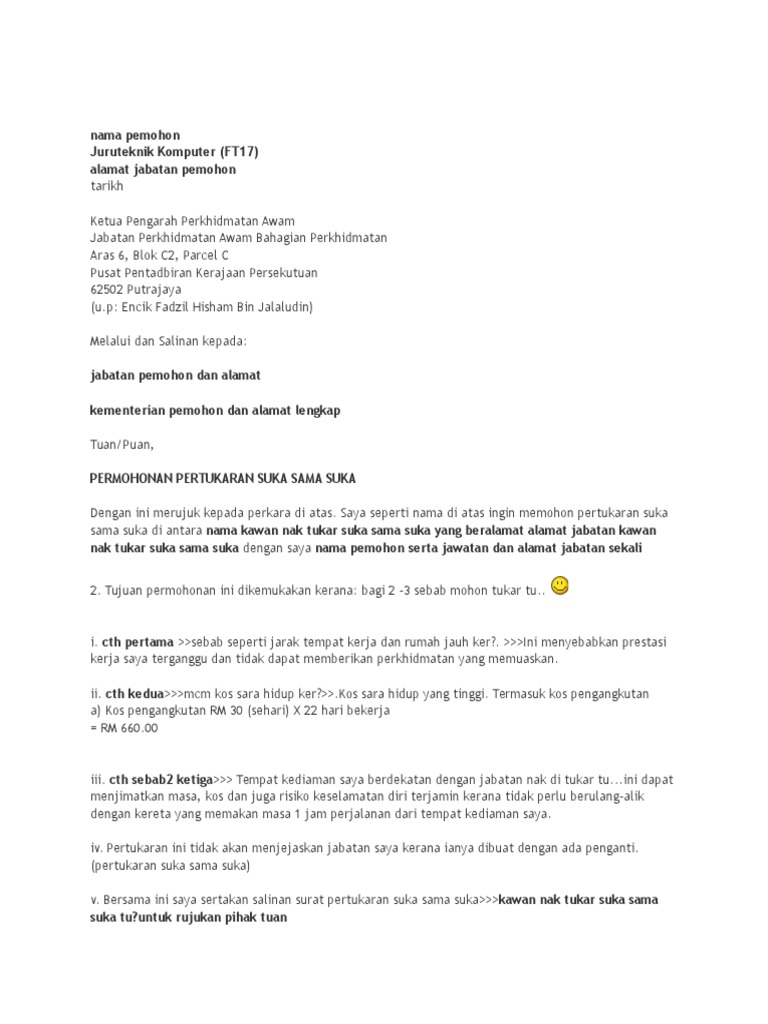 Penjawat Awam Contoh Surat Permohonan Pertukaran Tempat Kerja