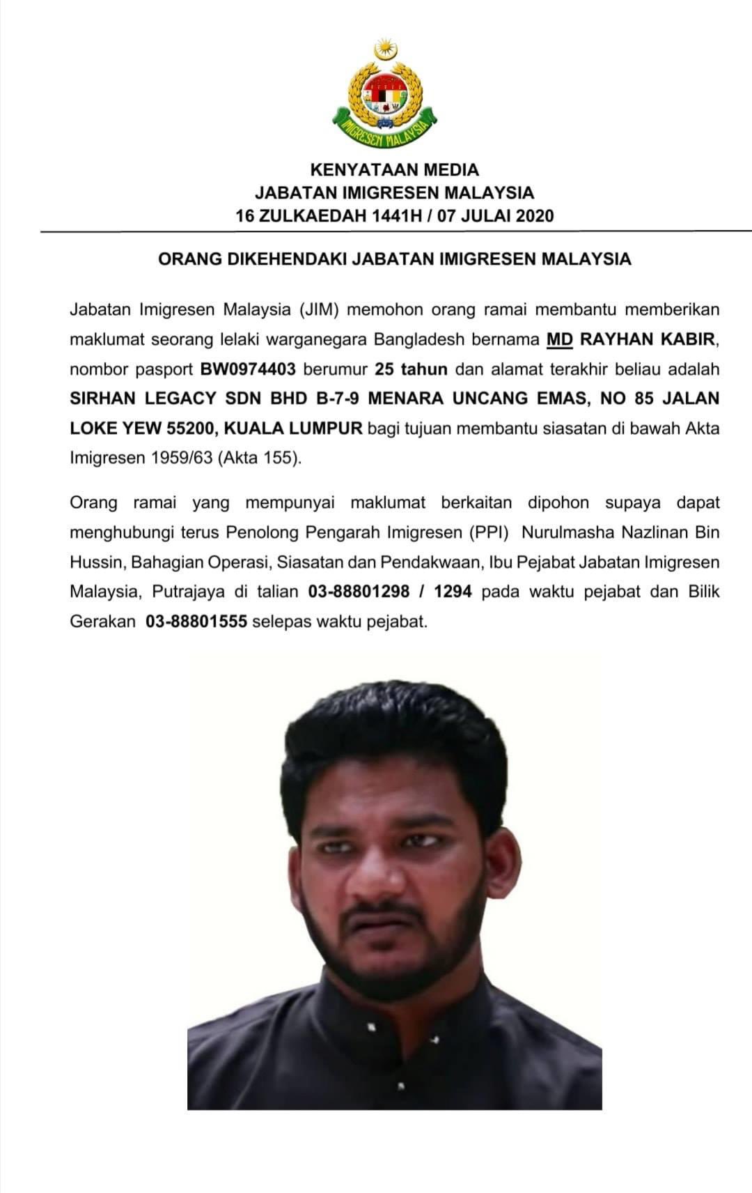 Thasha Jayamanogaran On Twitter Have You Seen Md Rayhan Kabir 25 Wanted By The Authorities To Facilitate Investigations Under The Immigration Act 1959 63 He Was Featured In The Al Jazeera S 25 Minute Report Titled
