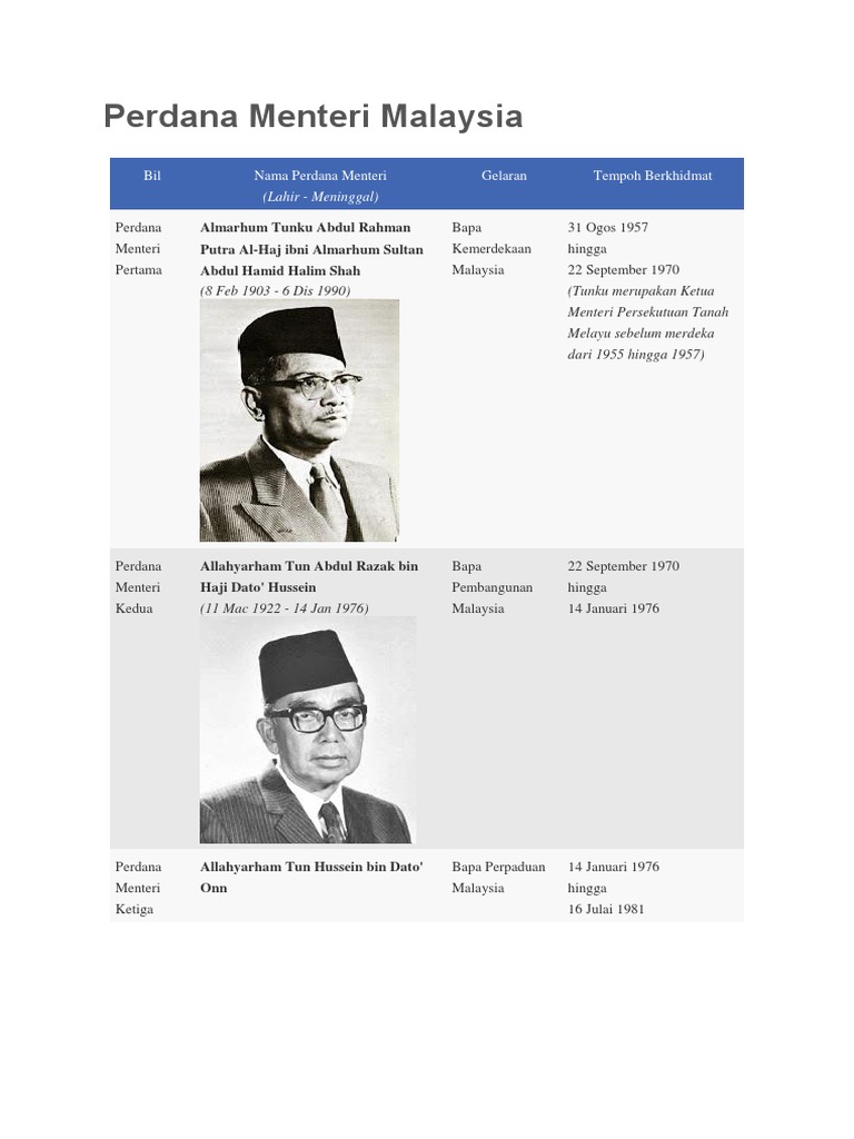Daftar Nama Perdana Menteri Malaysia Sejak Tahun 1957 Hingga Kini Lengkap Dengan Gelarnya Tribun Manado