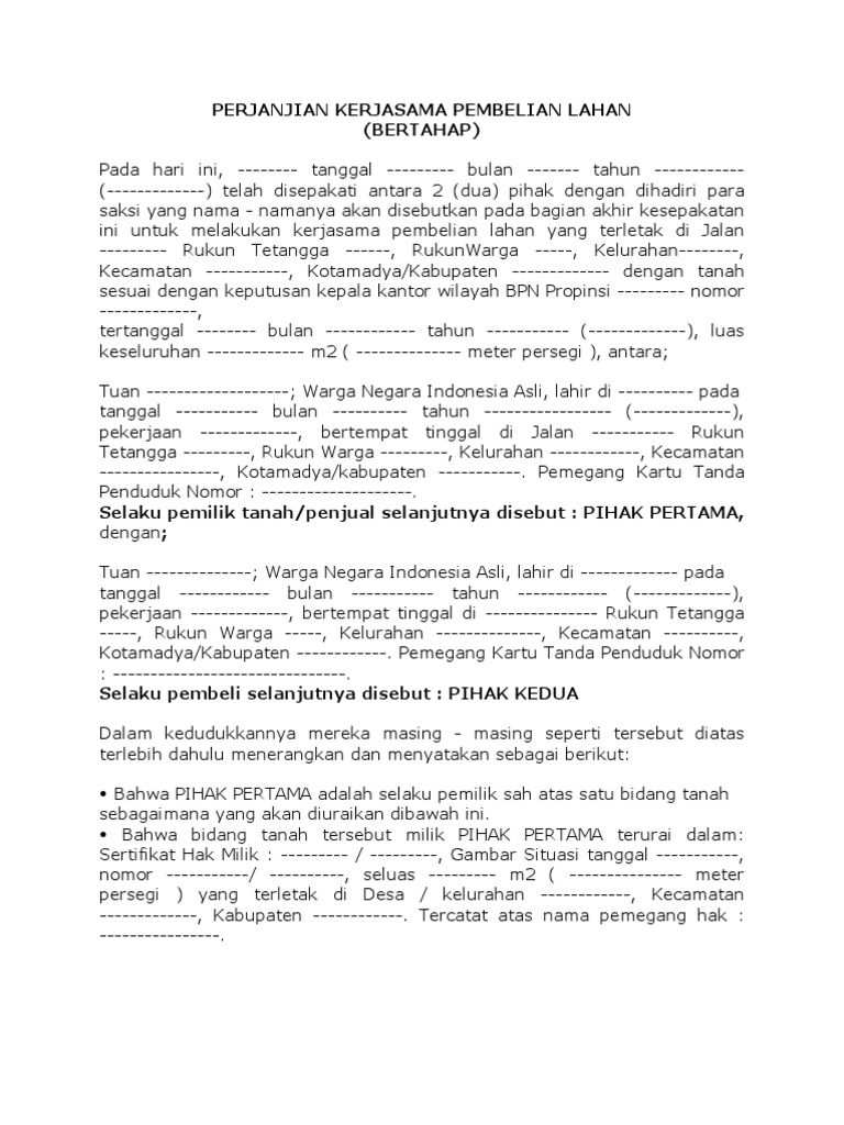 Surat Perjanjian Jual Beli Tanah Pembayaran Bertahap Kumpulan Surat Penting