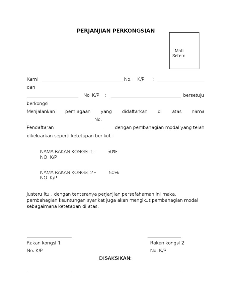 Contoh Surat Perjanjian Perkongsian Perniagaan Aku Dan Dunia Kita Pixel Surat Diy And Crafts