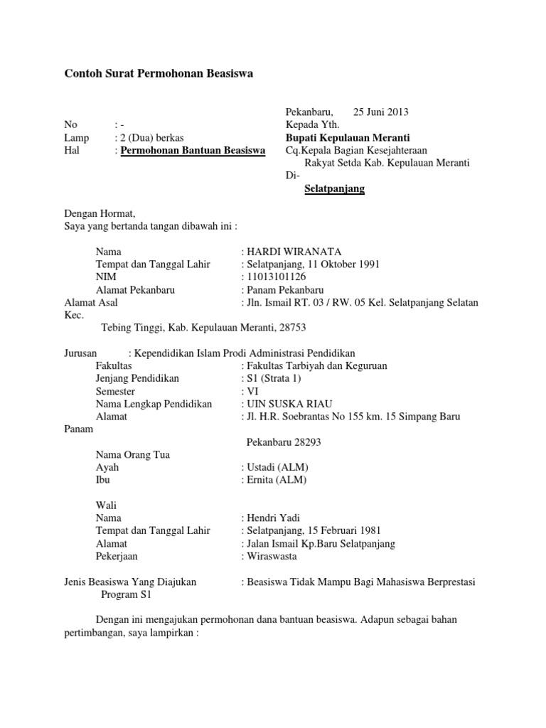 Contoh Surat Contoh Surat Permohonan Beasiswa Kepada Bupati Pdf