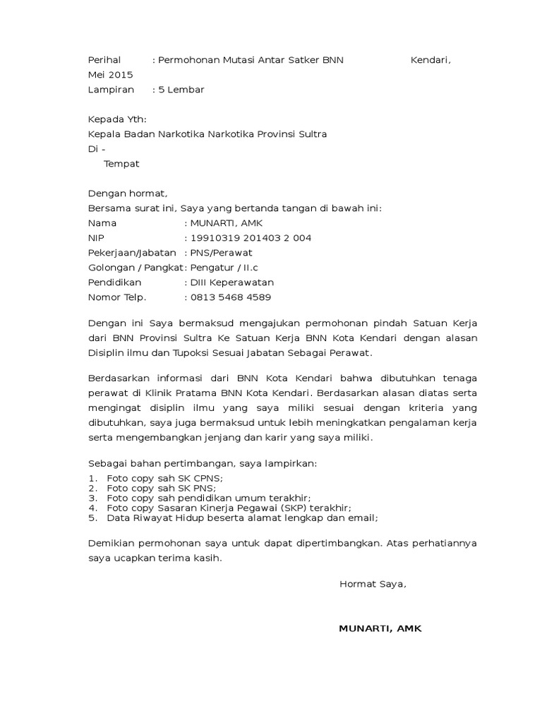 Contoh Surat Permohonan Pindah Tugas Antar Instansi Contoh Seputar Surat