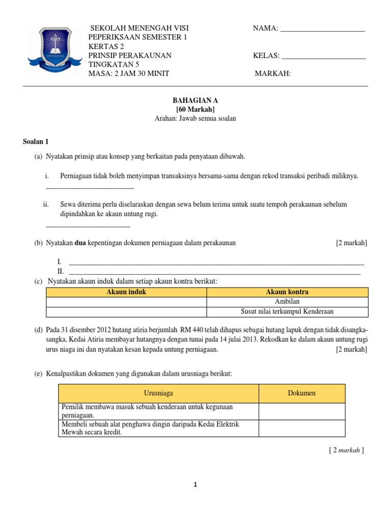 Kertas 2 Prinsip Perakaunan Tingkatan 5