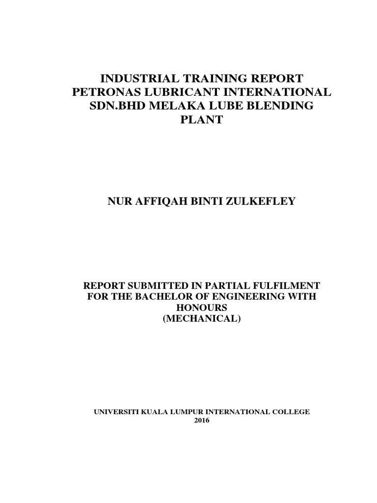 Industrial Training Report Docx Motor Oil Lubricant