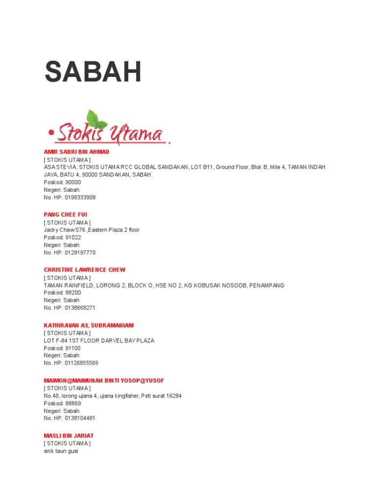 Ranau Sabah Postcode List Page 1 Malaysia Postcode
